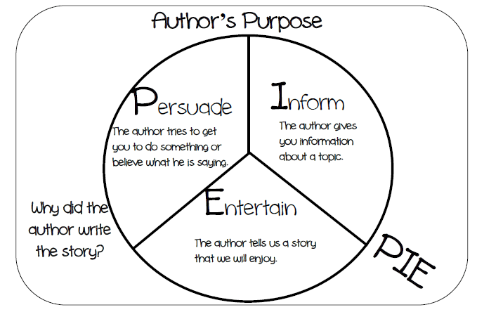 Finding the author's purpose is as easy as pie. Authors' purpose why did the author write the book? Unit extension ideas · if the author's purpose was to inform the reader, have them write about what they learned. Identify the main purpose of a text, including what the . · if the author's purpose was to entertain, have .